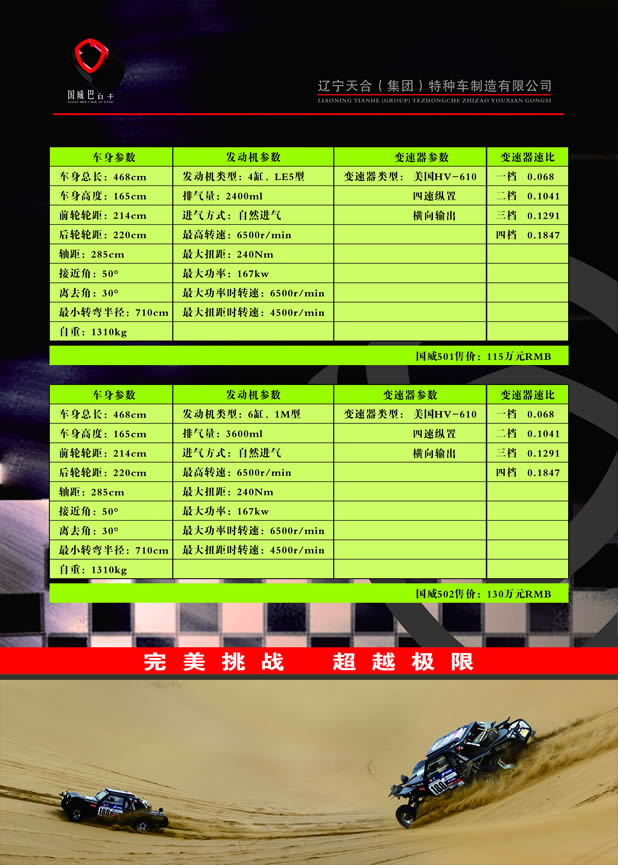 自巴吉車誕生以來,它的蹤跡始終沒有間斷,尤為重要的是施萊瑟1999-2000年兩次在達(dá)喀爾賽奪冠,徹底顛覆了賽車界對(duì)巴吉車的認(rèn)知,隨著世界賽場(chǎng)對(duì)參賽車型的改變,中國車隊(duì)及車手對(duì)參賽車型的選擇也有了質(zhì)的變化。那么,巴吉車屢立戰(zhàn)功的優(yōu)勢(shì)在哪里呢?在此,就國威501與四驅(qū)車的對(duì)比做一簡(jiǎn)單的闡述。